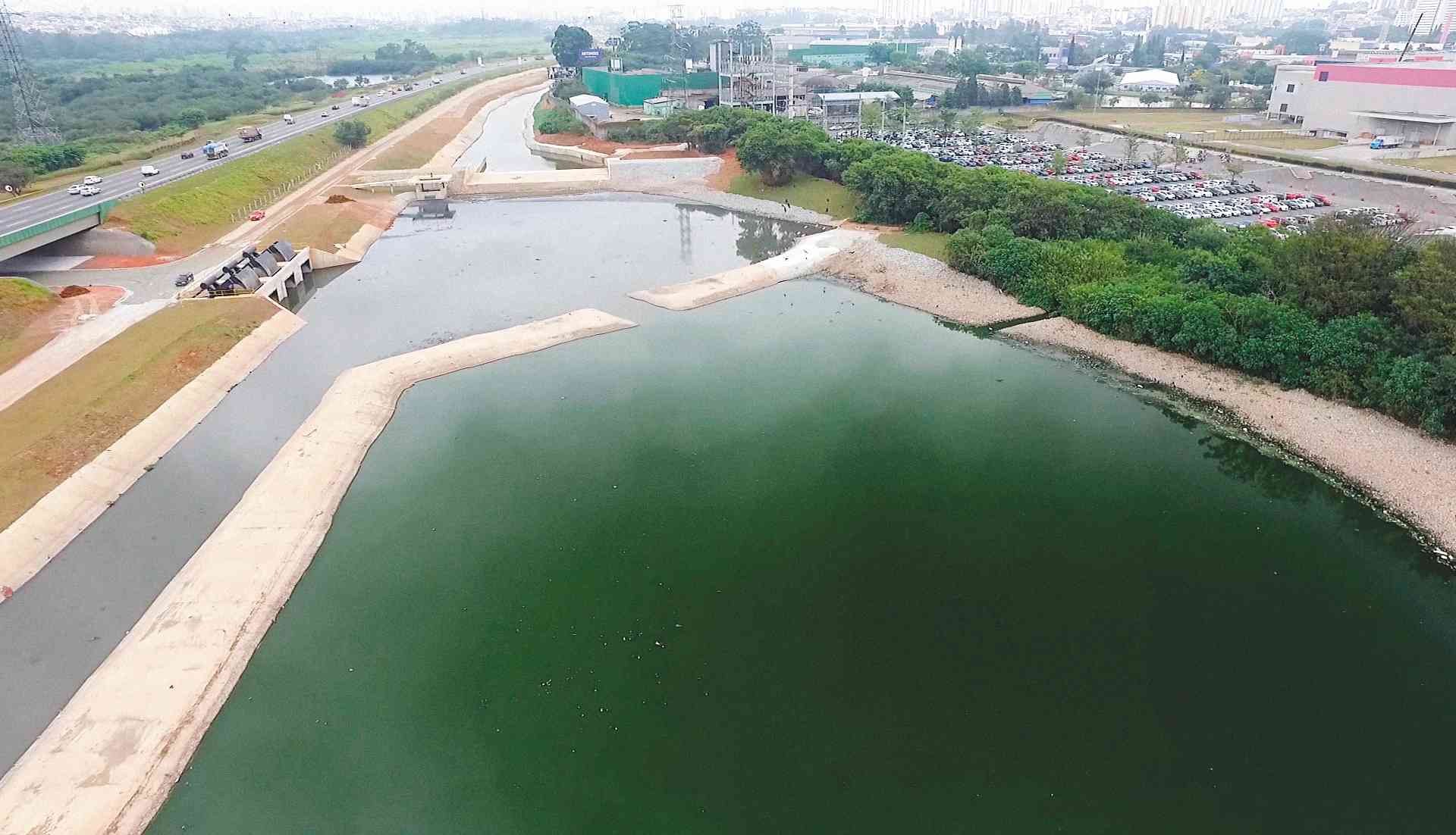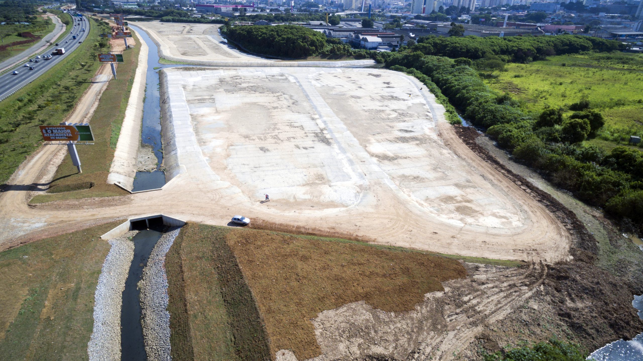 Realizada em Guarulhos - SP, a obra contempla a execução de um canal de circunvalação de 4,19 km e a construção de um reservatório de amortecimento de cheias com capacidade de acumulação de 450 mil m³ de água. O Projeto inclui ainda um canal de extravasão com sistemas automatizados de controle de descarga da água retida, mitigando desta forma um excedente de vazão a jusante e impedindo cheias em direção ao Lago da Penha.