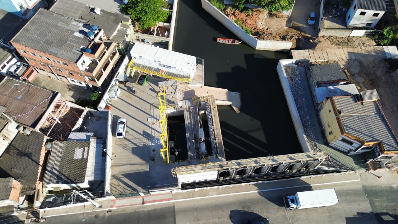 O empreendimento foi planejado para realizar o controle e o direcionamento das águas pluviais em períodos de chuvas intensas e marés elevadas, garantindo maior segurança para os moradores e reduzindo os impactos causados pelas inundações. Sua concepção envolveu a construção de um sistema completo, composto por poço de sucção, comportas de controle, área técnica para operação e manutenção, casa de apoio, sistema elétrico e de automação, além de infraestrutura para funcionamento contínuo mesmo em condições críticas.