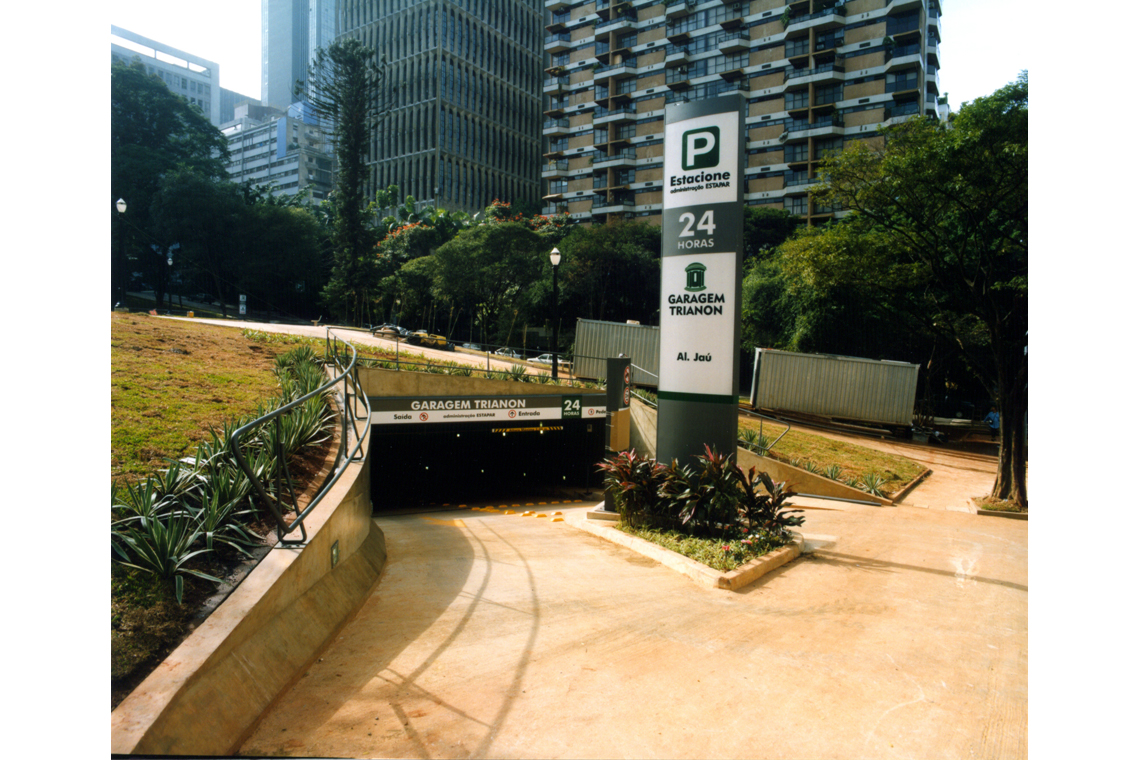 A Garagem Trianon foi um projeto audacioso que trouxe maior conforto para todos os que visitam ou trabalham na região da Av. Paulista. Se trata de um estacionamento subterrâneo que teve como grande desafio a preservação da configuração da Praça Trianon exatamente como era, o que limitou seu espaço de construção. Edificada pela Paulitec Construções Ltda. em parceria com as empresas Construbase e Estapar Estacionamentos, a garagem conta hoje com 500 vagas, uma saída superior para a Al. Santos e uma inferior para a Al. Jaú, e é atualmente gerida em conjunto pelas três empresas por meio de uma concessão junto à Prefeitura de São Paulo.