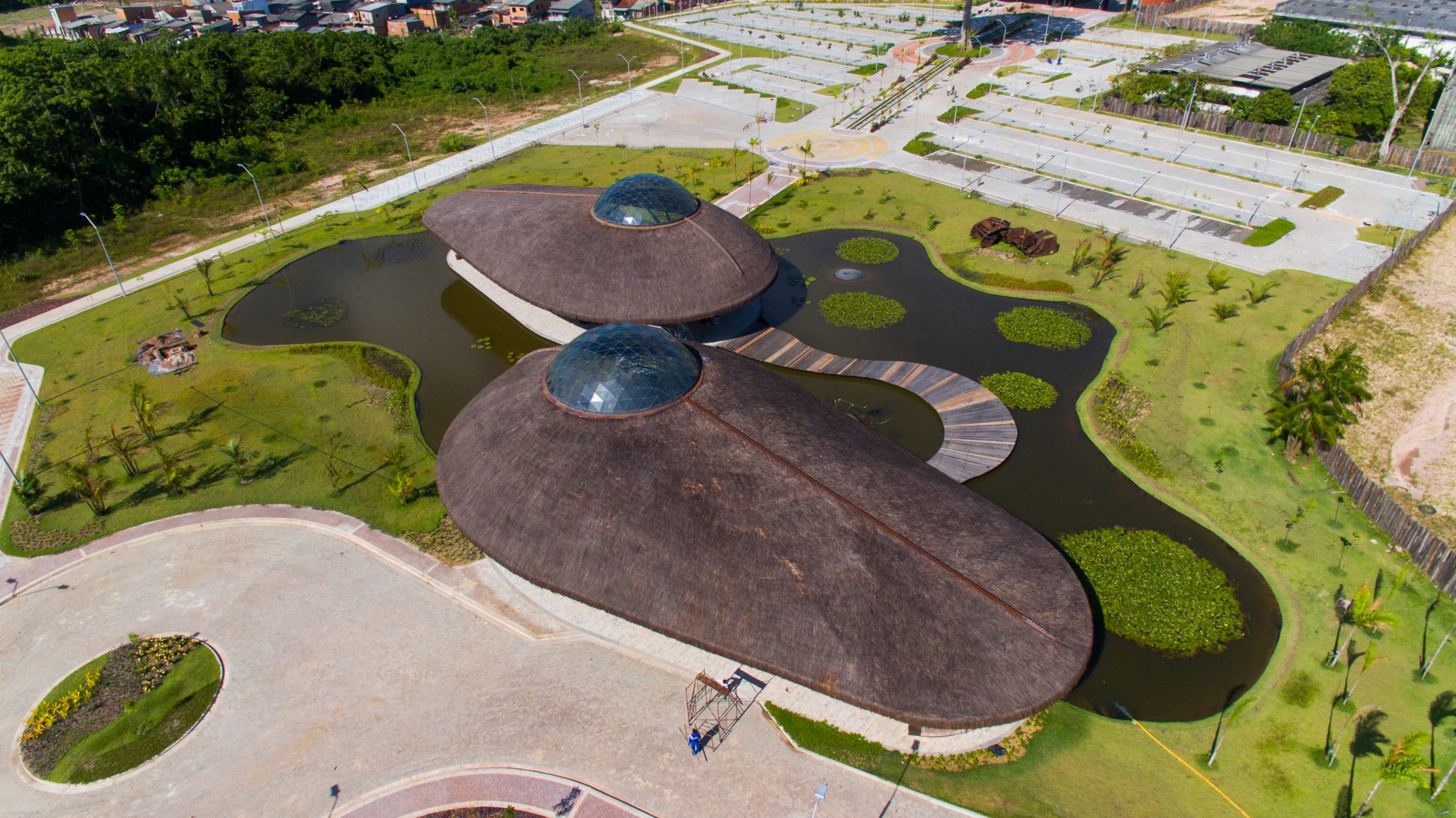 Na parte posterior dos acolhimentos estão localizadas 2 vagas para estacionamento de ônibus, ponte sobre o Igarapé Iúna executada com 3 tubos “Armco”, diâmetro de 2 metros e comprimento de 12 metros, que proporciona a ligação da área dos acolhimentos à via principal do parque.
