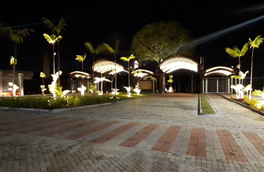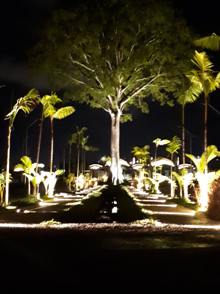 A implantação contempla, a construção de um pórtico de entrada, área de estacionamento, incluindo vagas para idosos e portadores de necessidades especiais, dois acolhimentos e via principal do parque.